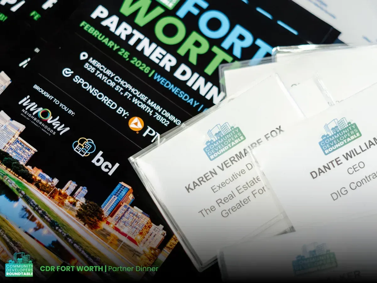Partners, sponsors, and developers gathered at Mercury Chophouse in downtown Fort Worth for the Community Developers Roundtable (CDR) Partner Dinner, an evening focused on strengthening the relationships that help move community-centered development forward.
